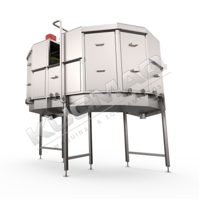 Construído em aço inoxidável AISI 304, garantindo resistência mecânica e fácil higienização, o túnel para manutenção de temperatura conta com portas para higienização, calha par coleta dos resíduos provenientes dos processos, pés com altura ajustável para nivelamento do equipamento e geometria configurável de acordo com a necessidade do cliente.