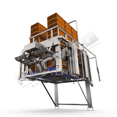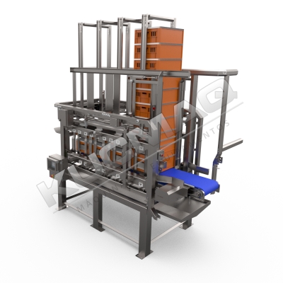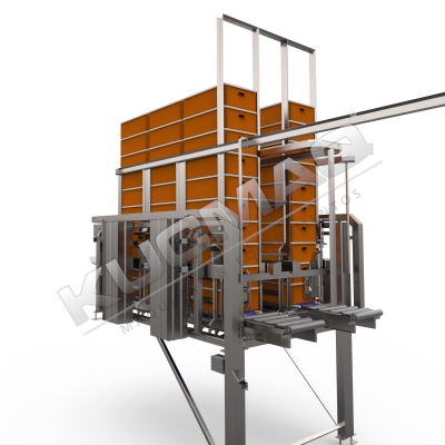 Para garantir uma expedição rápida e eficiente de gaiolas, o empilhador automático de gaiolas KUCMAQ traz uma solução ideal para empilhar e organizar as gaiolas antes de voltarem para o caminhão.